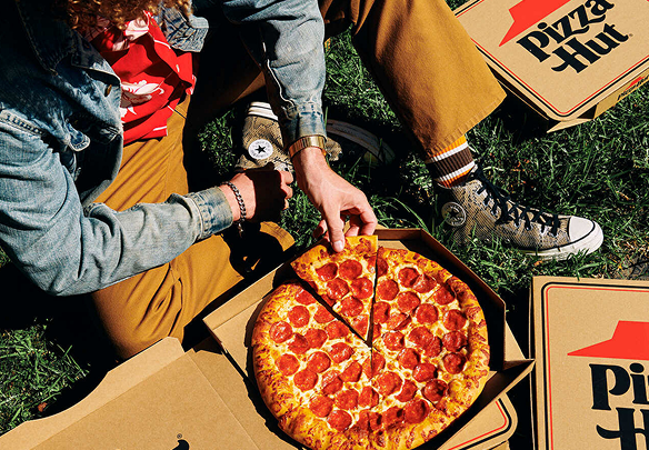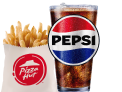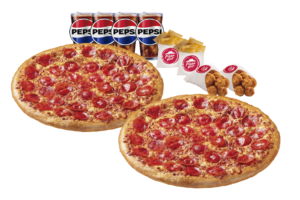 Queso mozzarella, doble pepperoni, papa mediana y bebida mediana.